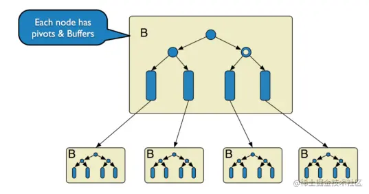 例如,一次插入操作只需要落在某节点的 Message Buffer 就可以马上返回了,并不需要搜索到叶子节点。这些缓存的更新会在查询时或后台异步合并应用到对应的节点中。