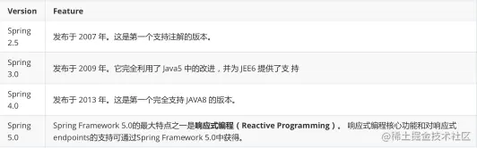 1、不同版本的 Spring Framework 有哪些主要功能?