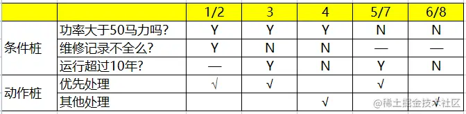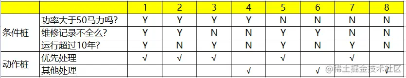 动作项: 列出在条件项的各种取值情况下应该采取的动作