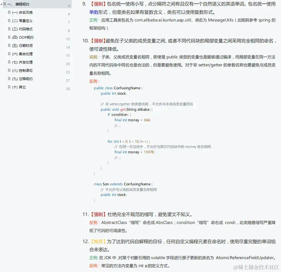 官方的Java代码规范标准,这份开发手册不仅规范了一些开发细节,也提出了很多工程开发的哲学,值得好好阅读。