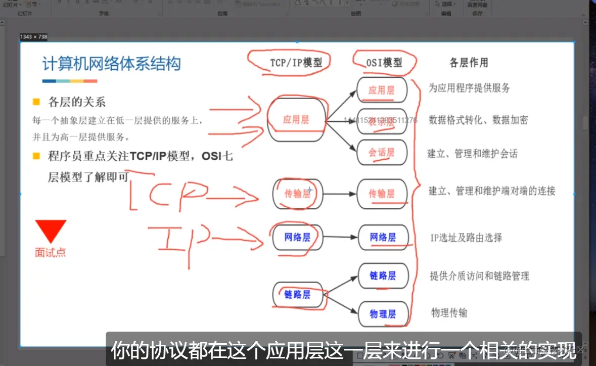 在往后就是它逐渐演变成上面的这七层ois模型,简化后就是这么一个tcp/ip的四层模型,