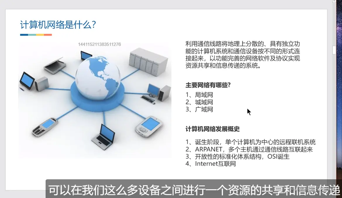 现在现在这个机构目前来讲还在,叫做美国国防部高级研究所,阿帕网这么一个相关的网络系统,它干什么呢,把这一个多个大局的计算机的主机连接起来,然后,大学之间,主任之间用分组交换的技术,然后进行一个相关的互联,那么也就是说这个当年的计算机网络诞生的时候,他是为了应付战争的情况下面保证某一个节点被摧毁了以后,我的网络依然存活,所以说大家在学习TCP的协议的时候,就会完全可以感知到,TCP/IP,他的设计一大目的就是为了去中心化。