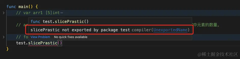 于是将test包中slicePrastic函数首字母大写,问题得到解决。