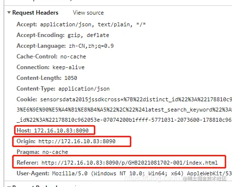 会发现Host的域名端口号和前端资源地址Referer的域名端口号一致。(关于Host和Referer的概念请看我这篇博客:http请求头中的origin、referer、host)。