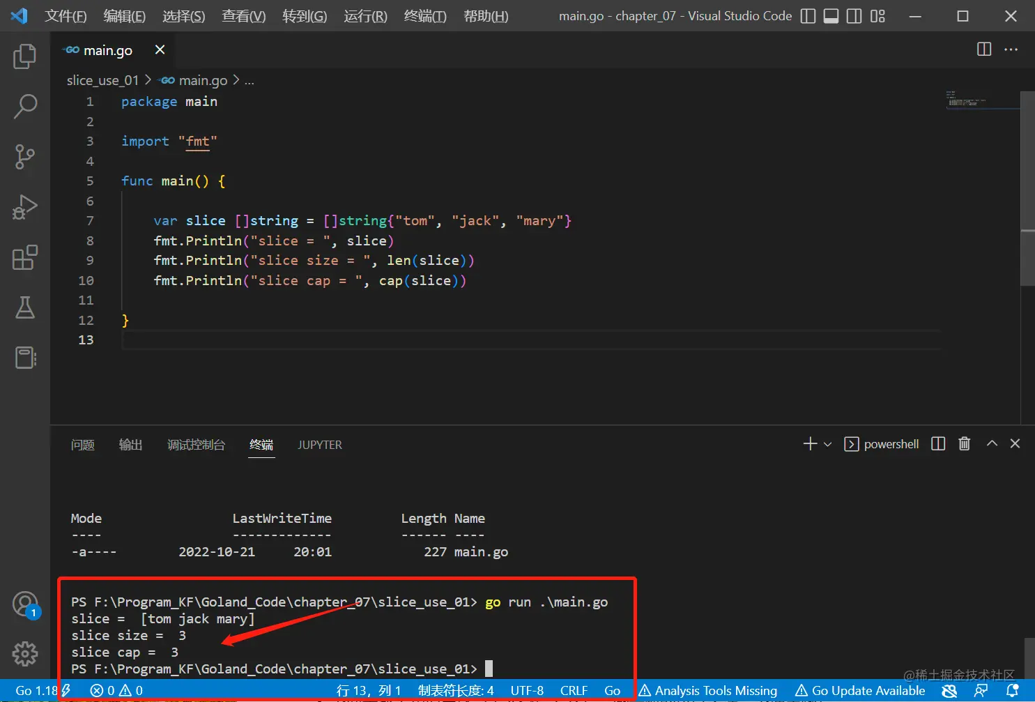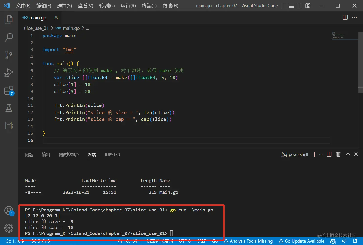 第一种方式:定义一个切片,然后让切片去引用一个已经创建好的数组,比如前面的案例就是这样的。