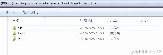 下载之后,解压 bootstrap-3.3.7-dist ,有三个文件夹: