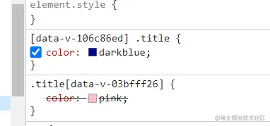 在选择器前加上::v-deep空格即可实现,我们看到标题变为了深蓝色