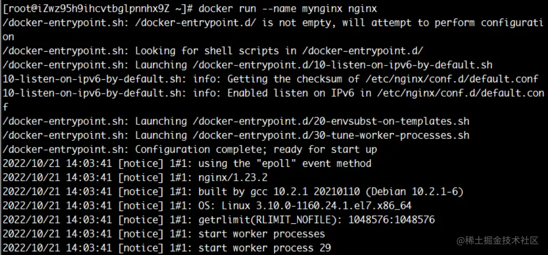 docker run --name mynginx nginx启动容器,并且命名为mynginx