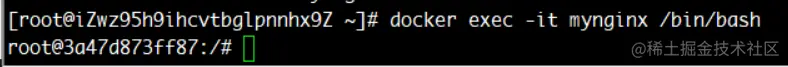 docker exec -it myginx /bin/bash可以进入nginx容器中的端口,这里通过修改nginx的默认页来了解其他的一些基本命令。