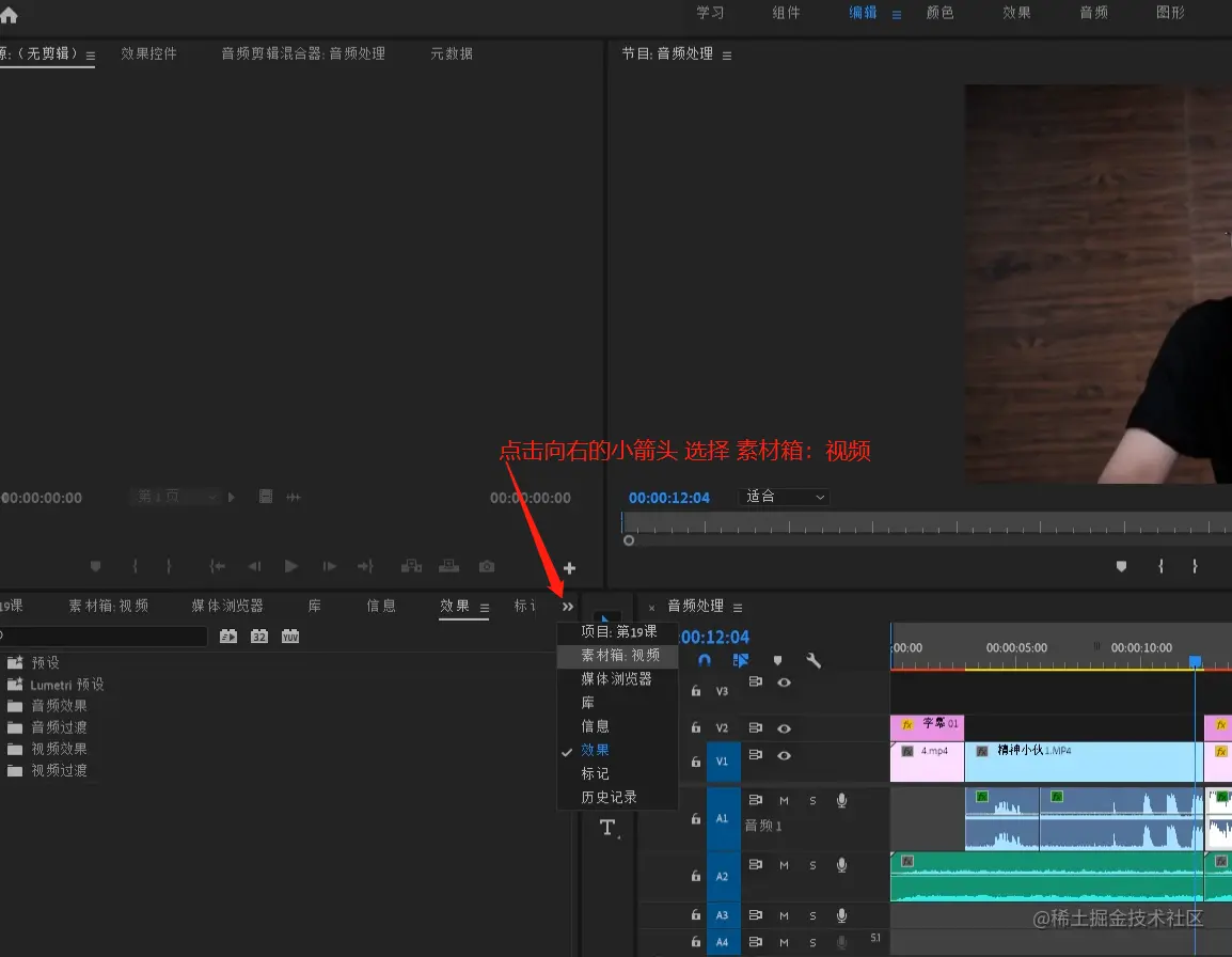 - 选中项目面板视频文件夹 找到logo素材