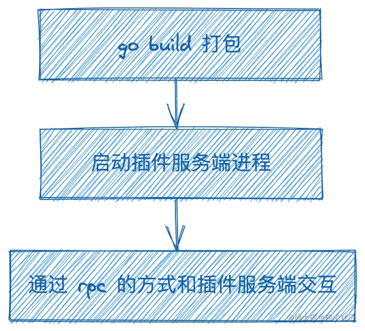 鉴于 Golang 原生插件框架的问题,所以包括 Terraform、Grafana 等系统使用的是 go-plugin 这个框架。go-plugin 使用流程如下。