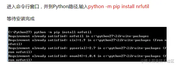 2.打开命令行,输入pip install nrfutil安装nrfutil,需要联网。