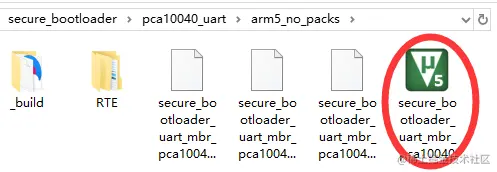 找到SDK中 secure_bootloader 工程(nRF5_SDK_15.0.0_a53641a\examples\dfu\secure_bootloader\pca10040_uart\arm5_no_packs)