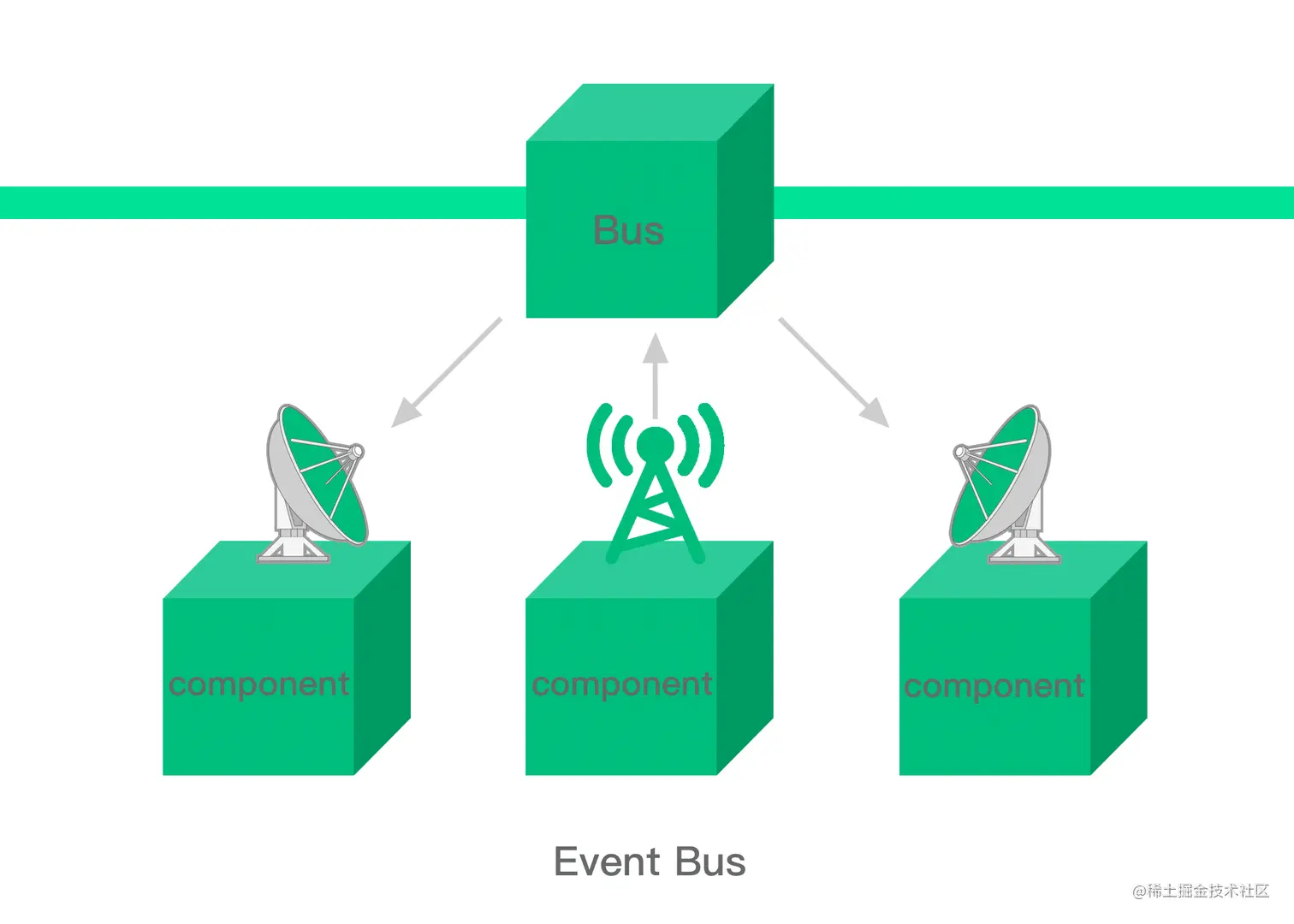 - 当子组件有一些事件发生时,比如在组件中发生了点击,父组件需要切换内容
