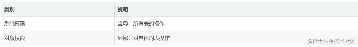 对象权限:局部,对具体的表操作
