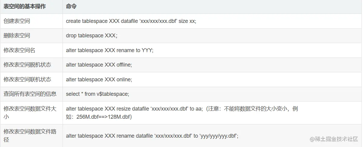 修改表空间数据文件路径:alter tablespace XXX rename datafile ‘xxx/xxx/xxx.dbf’ to ‘yyy/yyy/yyy.dbf’;