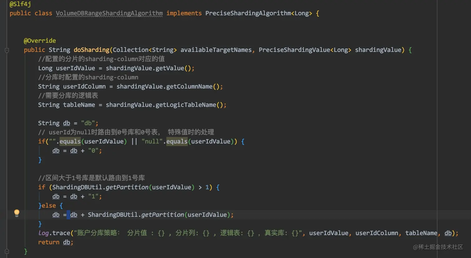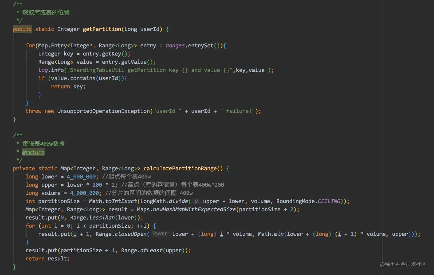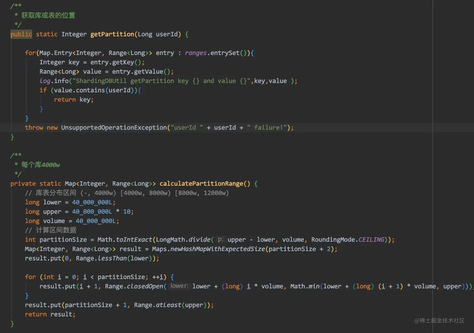 分库的算法如下图所示,这里使用到了 guava 的 range 方法进行计算以及分库的区间划分。