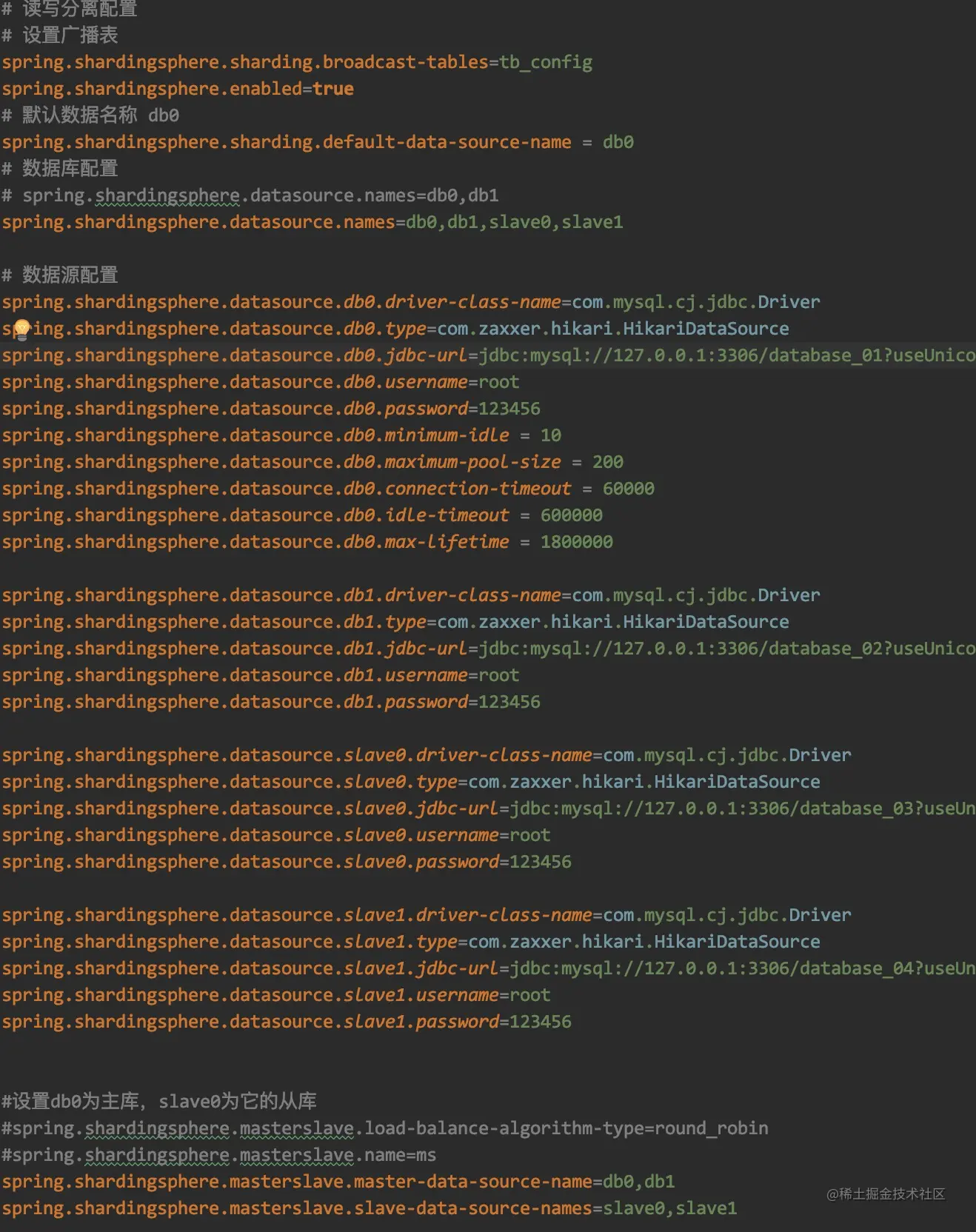 如果项目中除了分库分表的情况,还要多数据源,那么其数据库配置文件需要改写,具体如下所示: