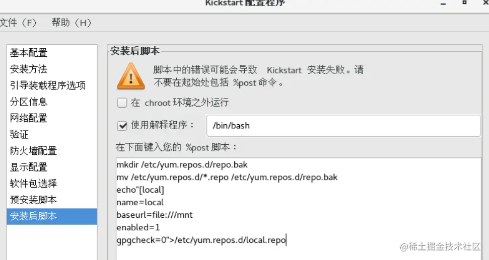 8。安装后脚本 解释程序为/bin/bash,自动配置本地yum仓库