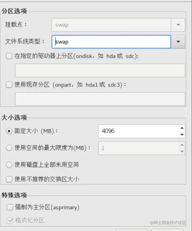 swap分区 分配4096MB