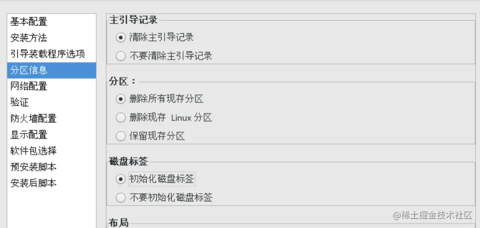 打开配置程序窗口:system-conf-kickstart