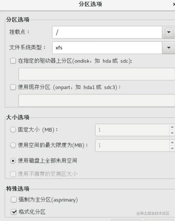 类型xfs 剩余全部空间