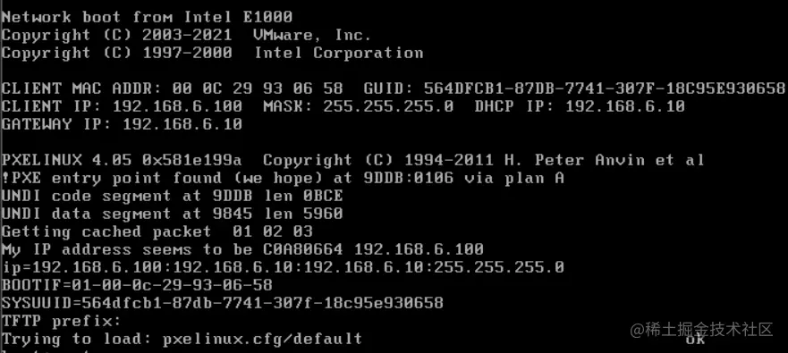 PXE(预启动执行环境,在操作系统之前运行)是由Intel公司开发的网络引导技术,工作在Client/Server模式,允许客户机通过网络从远程服务器下载引导镜像,并加载安装文件或者整个操作系统。