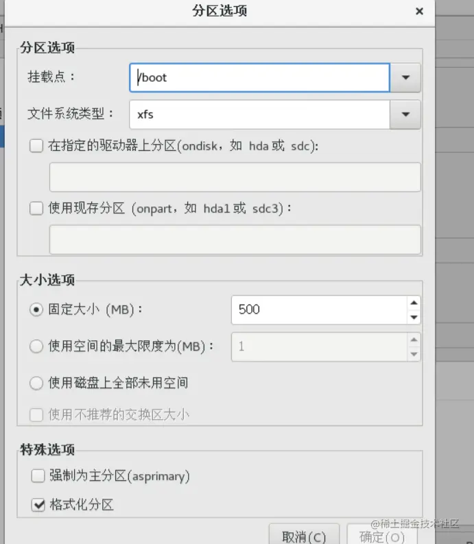 /boot 类型xfs 分配500MB