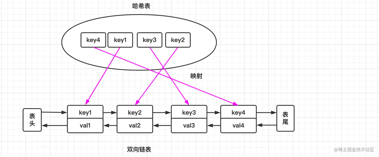 LRU 算法就是⼀种缓存淘汰策略,原理不难,但是⾯试中写出没有 bug 的算法⽐较有技巧,需要对数据结构进⾏层层抽象和拆解。