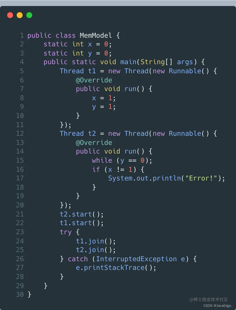 只要JVM遵守JMM,不管在什么平台,最后运行结果都一样。案例一把变量 y 修改成volatile修饰的,就不会再出现在x86上不会打印Error,而在Arm有机率打印Error的情况。所有平台运行结果的一致性由JVM遵守JMM来保证的。