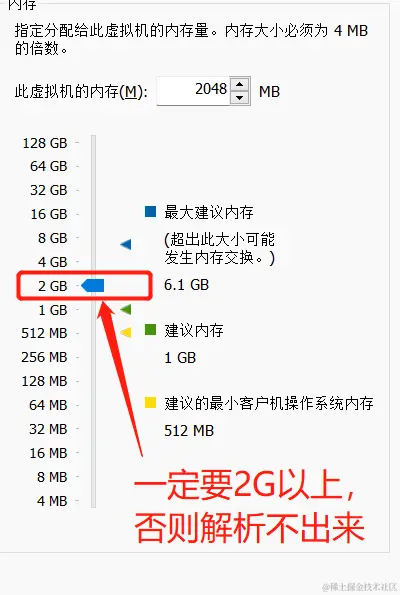 使用VMware创建的虚拟机进行测试,虚拟机内存至少需要2GB,否则在启动安装时可能会报错,其他安装步骤无需改变。