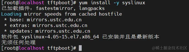yum install -y syslinux ##PXE引导程序由软件包syslinux 提供