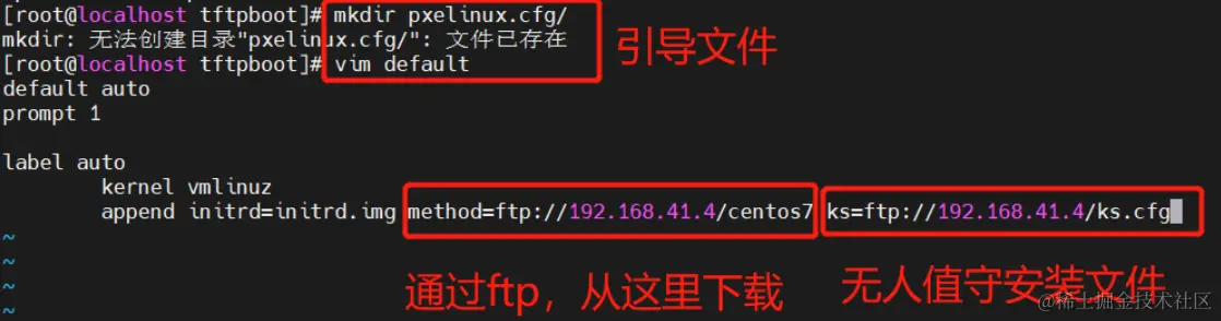 所以需要创建pxelinux.cfg目录 和 default 配置文件