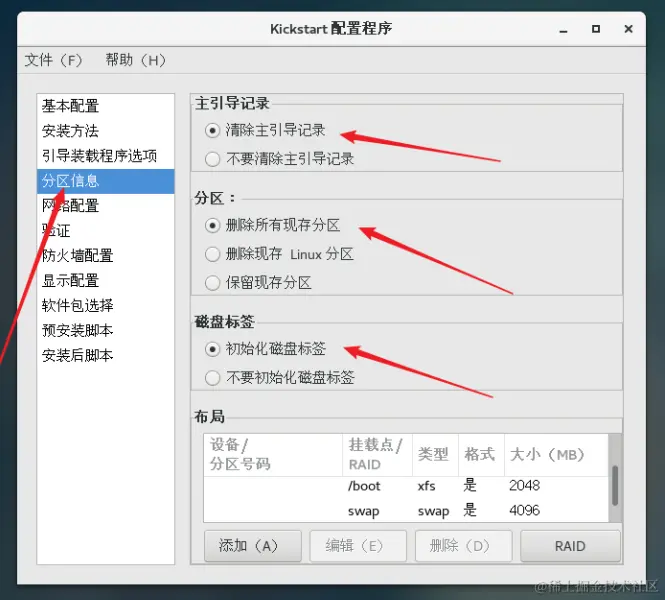 可以根据需要将/root/anaconda-ks.cfg的软件包安装脚本复制到ks.cfg文件中,只需要复制%packages到%end部分即可。