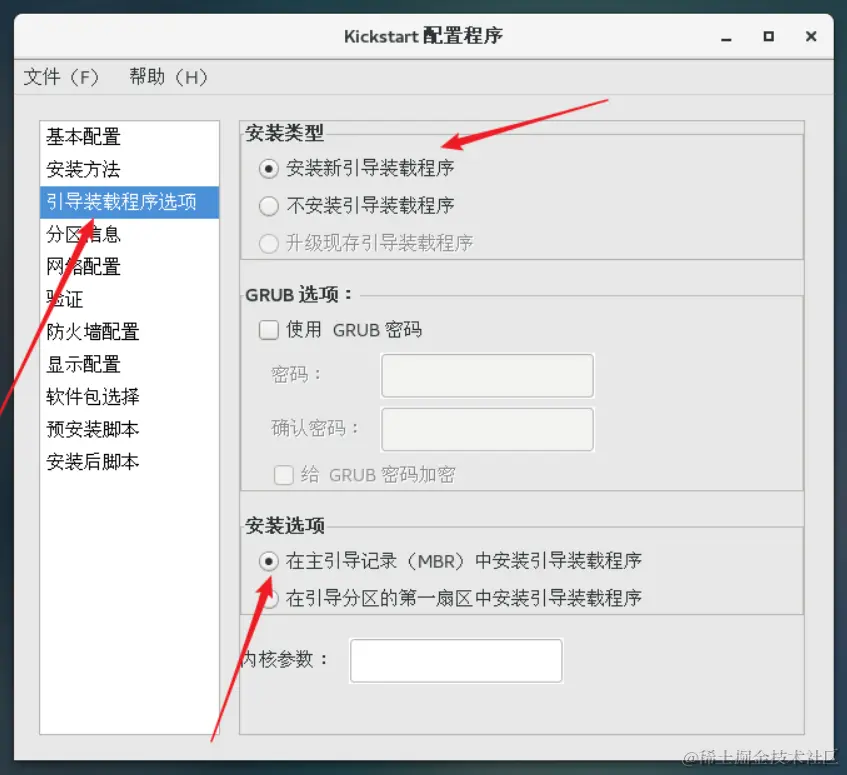 > “安装选项”:在主引导记录(MBR)中安装引导装载程序