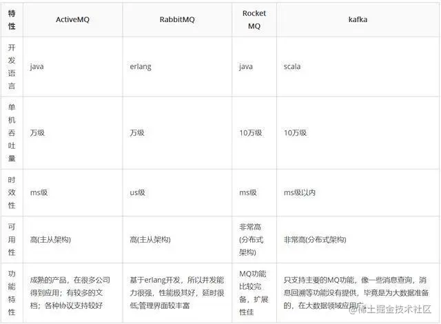 RabbitMQ :结合erlang语言本身的并发优势,性能较好,社区活跃度也比较高,但是不利于做二次开发和维护。不过,RabbitMQ的社区十分活跃,可以解决开发过程中遇到的bug。