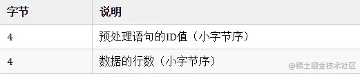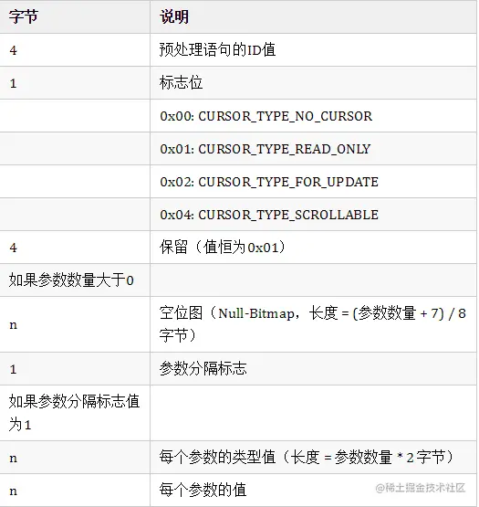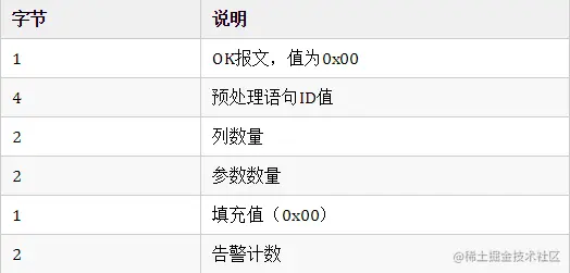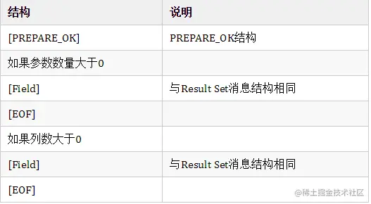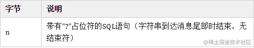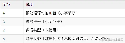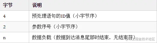 功能:预处理SQL语句,使用带有"?"占位符的SQL语句时发送该消息。