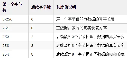 ■ length <256^2 3 byte(第一个byte是252)