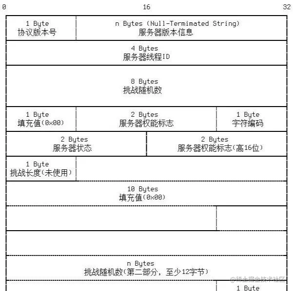 挑战随机数:MySQL数据库用户认证采用的是挑战/应答的方式,服务器生成该挑战数并发送给客户端,由客户端进行处理并返回相应结果,然后服务器检查是否与预期的结果相同,从而完成用户认证的过程。