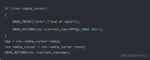 mysql_fetch_row仅仅是使用内部的游标,遍历result->data里的数据