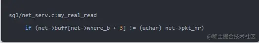 my_net_read负责解包,首先读取4个字节,判断packet number是否等于net->pkt_nr然后再次读取packet_number长度的包体。
