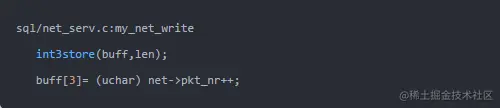 ● 当写入的数据和buff内的数据超过buff大小才会发出一次 write操作,然后再把要写入的buff里插入数, 写入不会 导致buff区区域扩展.(sql/net_serv.cc: net_write_buff).