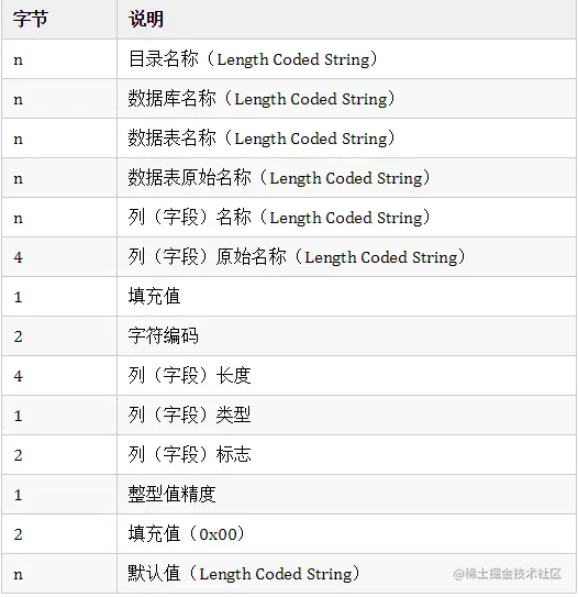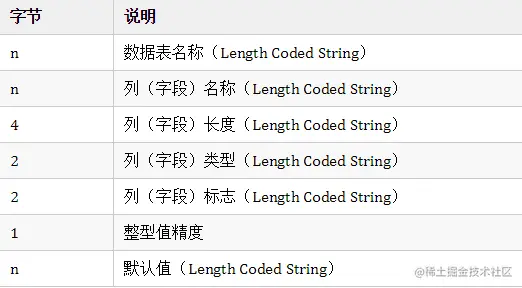 字符串长度不固定,无'NULL'(0x00)结束符,编码方式与上面的 Length Coded Binary 相同。