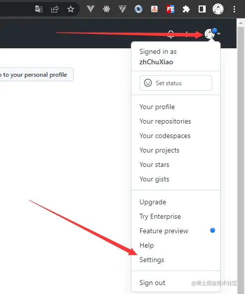 pbcopy < ~/.ssh/id_rsa.pub5-2.打开github.com/登陆你的账户,进入Settings(设置)>>