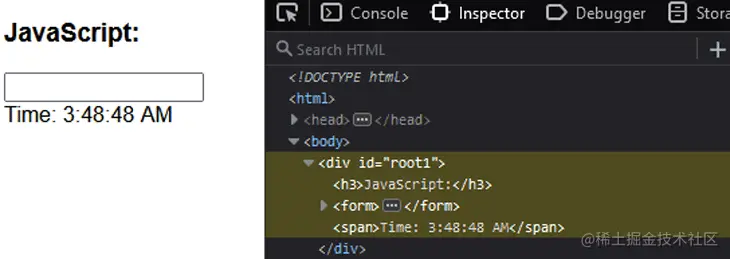 让我们用下面的 JavaScript 代码模拟一个重新渲染的页面: