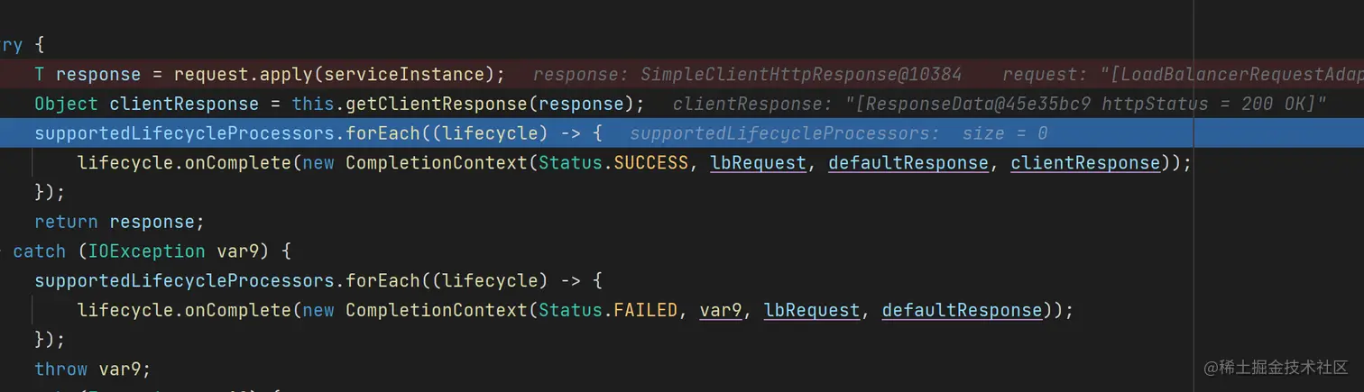 先将 serviceInstance对象封装为 defaultResponse,再通过 serviceId获取支持生命周期处理器。