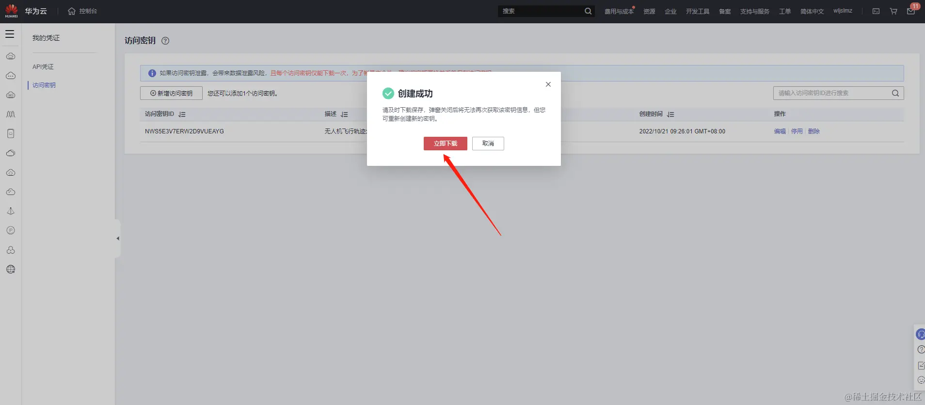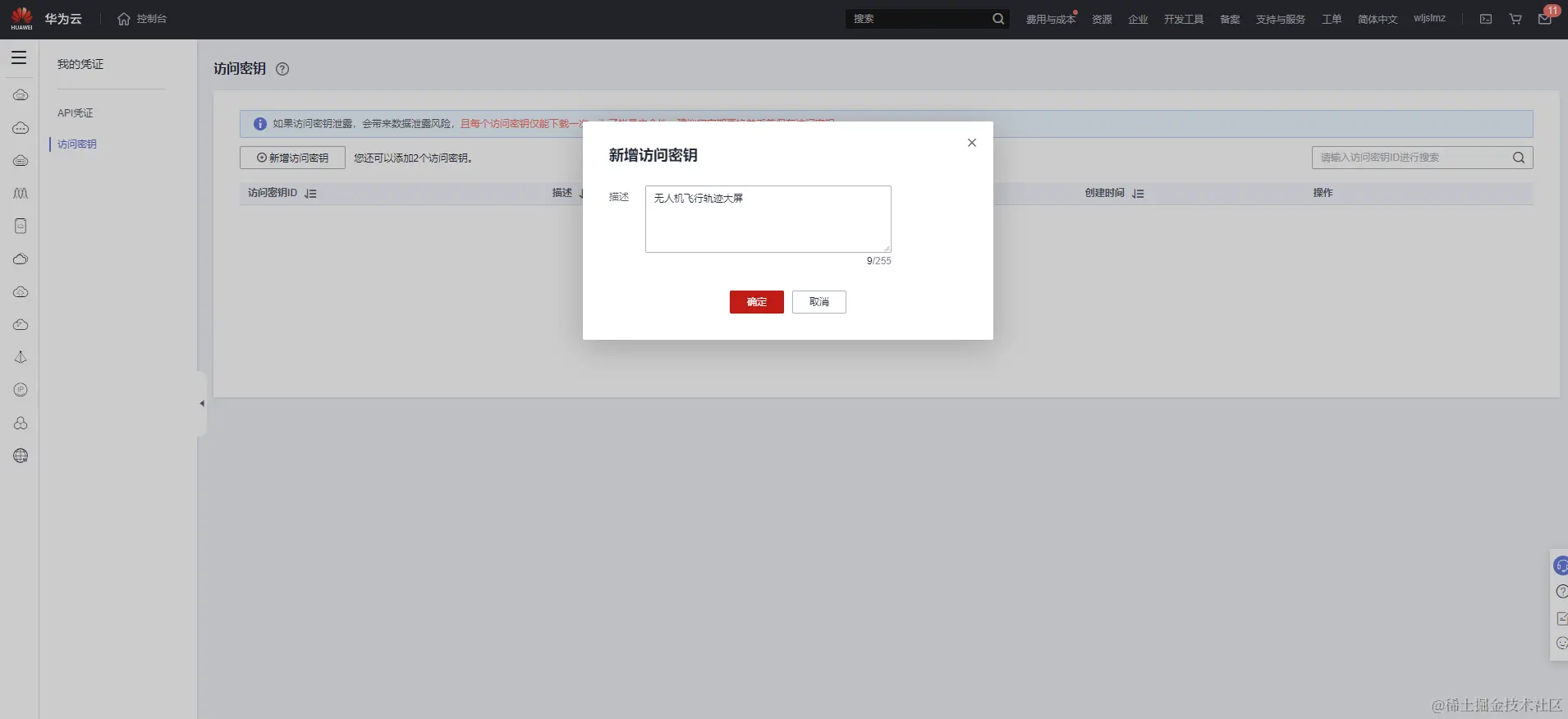 https://console.huaweicloud.com/iam/?region=cn-north-4&locale=zh-cn#/mine/accessKey