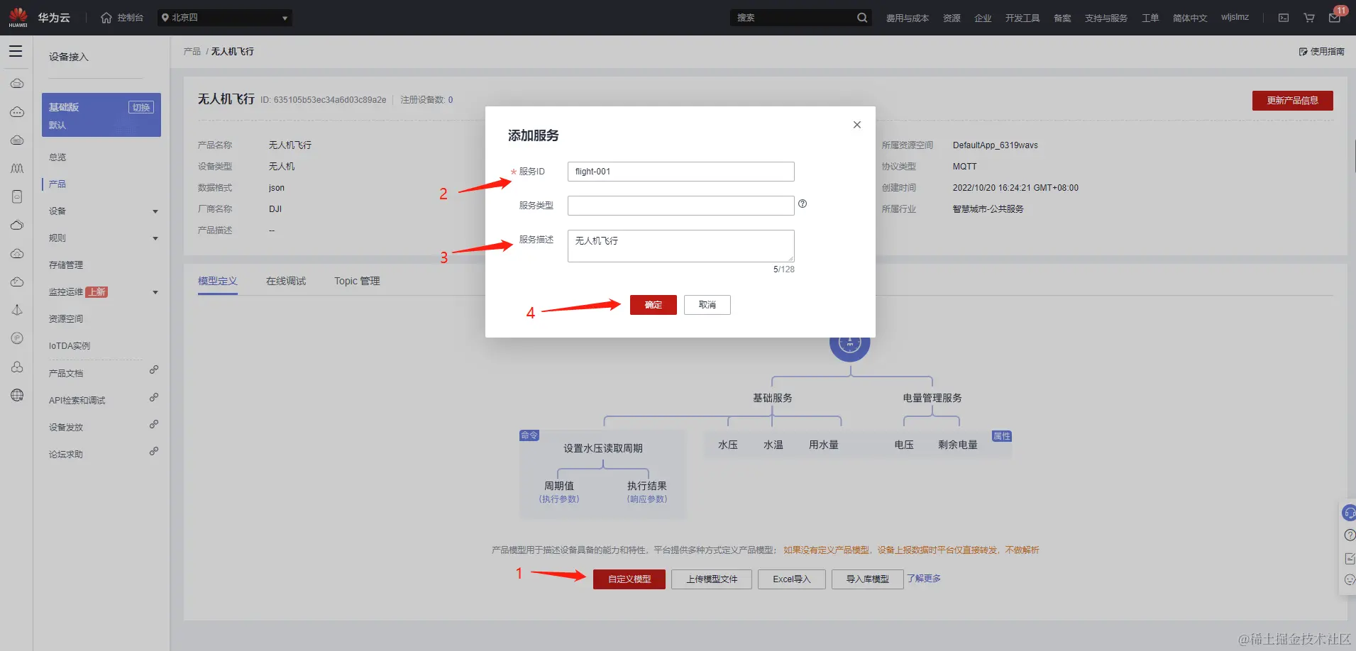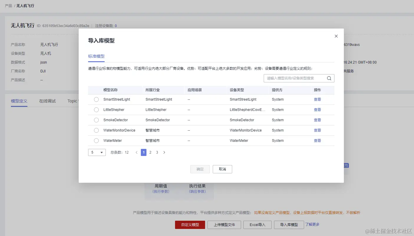 在模型定义中,官方给的例子是智能水表,导入的模型中也没有无人机相关的模型: