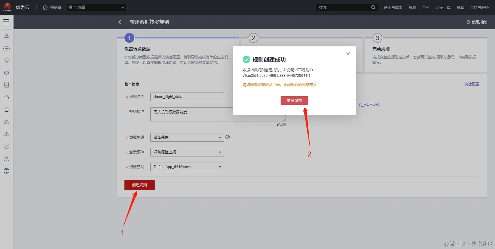 模型建好了,下面就是将这个无人机上报的数据进行转发到我们创建的OBS中。