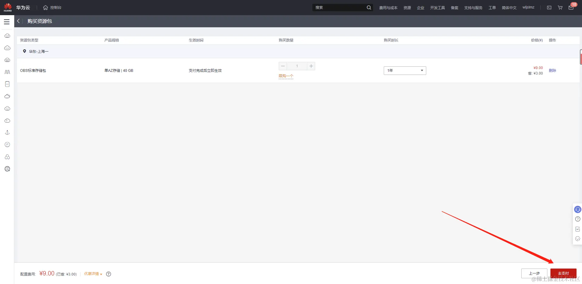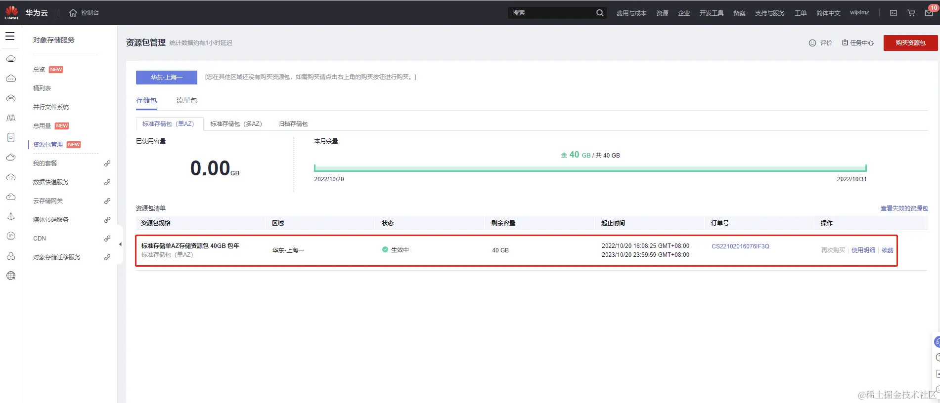 我们在控制台就可以看刚刚购买的资源包: